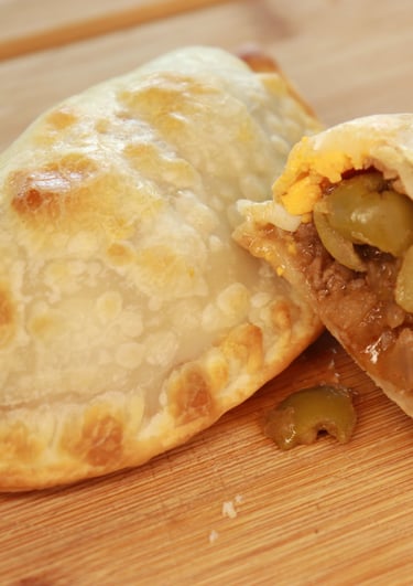 Recheio suculento com azeitonas, páprica doce e cominhos. Um clássico argentino. Também disponível versão picante. 🌶️