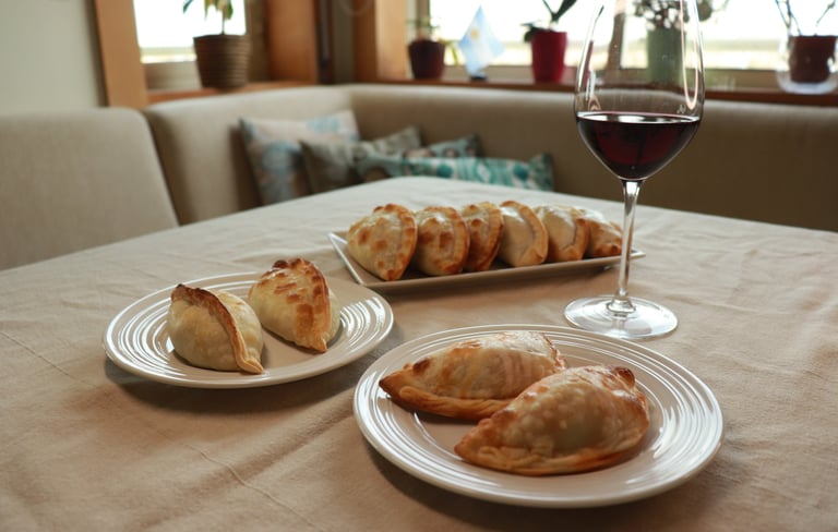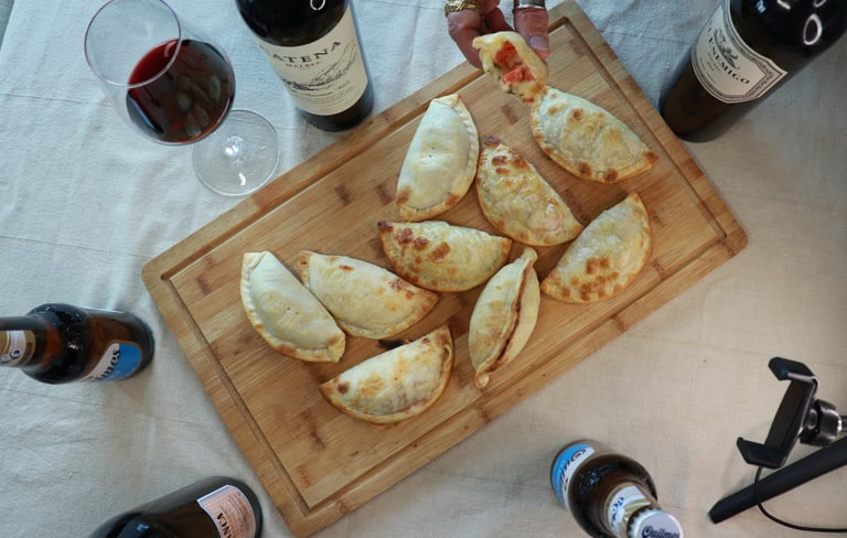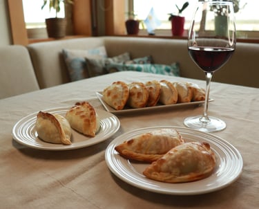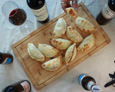 Empanadas argentinas artesanais, feitas à mão no próprio dia, entregues frescas para o teu evento. Servem-se em 3 minutos, comem-se com as mãos, e toda a gente pergunta: "onde é que arranjaste isto?''